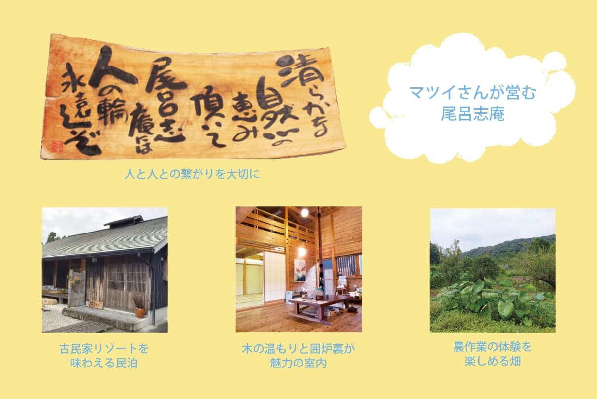 現在は、御浜町尾呂志地区で「尾呂志庵」という民泊を営んでいます。